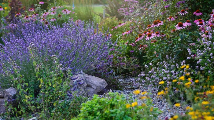 - Lavanta. Bitki sadece narin mor rengi ve hoş aromasıyla değil aynı zamanda iddiasızlığıyla da değerlidir. Isıyı ve kuraklığı iyi tolere eder ve sık sulama veya gübreleme gerektirmez. Kompakt çalılar düzgün sınırlar oluşturur ve çiçekler faydalı böcekleri çeker.