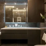 2016’da parlaklığa hayran kaldıysak, 2026’da mat, eskitilmiş metalleri seçiyoruz. Pirinç ve altın musluklar, soğuk kromun yerini alıyor ve koyu renkli fayanslar, beton ve koyu yeşil tonlarla güzel bir şekilde eşleşiyor.Biraz gösterişli ama gösterişten uzak.
